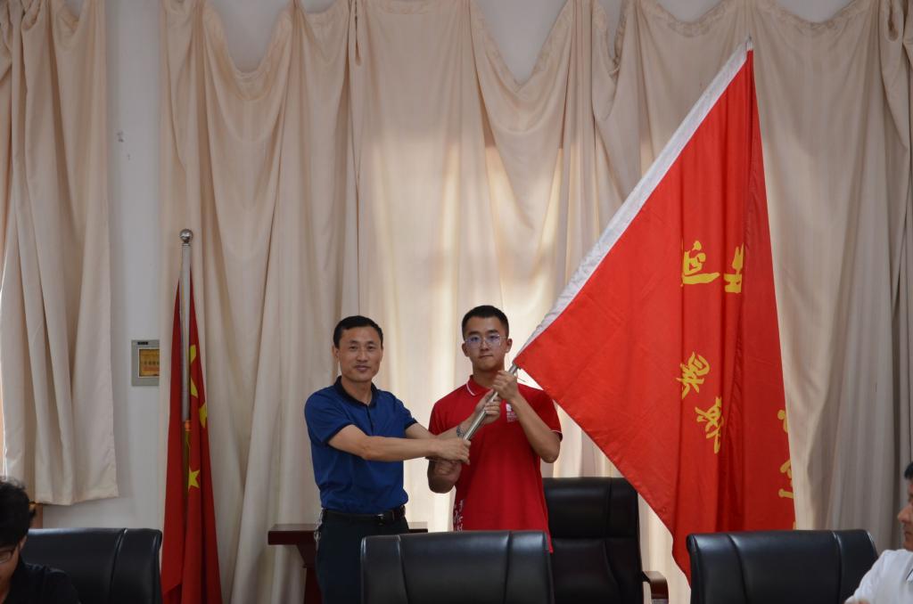 陈瑶代表公司党政向参与社会实践的师生表示亲切问候,并提出五点要求:一是按照社会实践服务内容认真准备,充实内容,积极工作,责任到人,注重质量和效果;二是报着谦虚的态度,带着问题,向基层群众学习,充分了解基层民众的现状;三是注意言行举止,团结合作,塑造良好形象;四是严守纪律,一切行动听指挥;五是始终把安全工作放在首位,做好安全教育和管理。最后,陈瑶为2019年暑期“三下乡”社会实践服务队授旗。