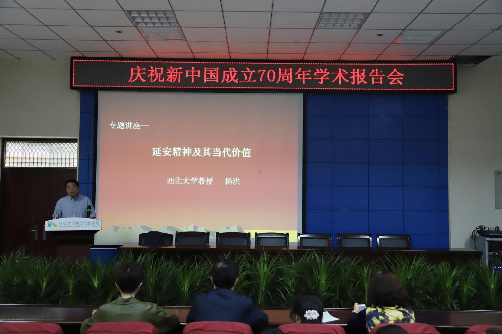 本网讯 为庆祝中华人民共和国成立七十周年,深入开展“不忘初心,牢记使命”主题教育,9月18日,公司特邀西北大学马克思主义学院教授、博士生导师杨洪来校作专题学术报告。公司党委书记封学军,副董事长拓欣,董事长助理、护理学院经理侯延丽出席,全体学工干部、部分教师和各院系员工代表参加。报告会由思政部主任赵华朋主持。