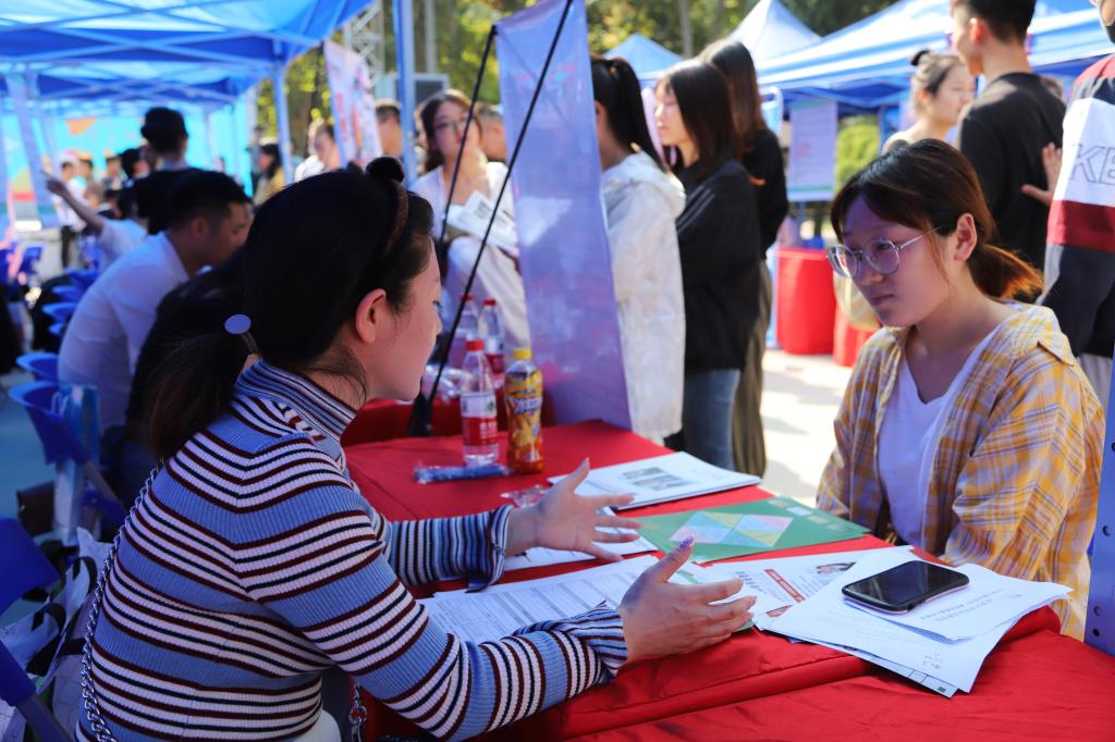 此次招聘会由人才招聘处主办,涉及土木工程、财会类、电子信息、教育类、艺术类、护理学等专业,参会单位共计126家,提供就业岗位4036个,公司875名毕业生参加了此次招聘会。招聘会现场,同学们积极与用人单位沟通,了解单位所需,踊跃投递简历,为自己争取更多的就业机会。部分用人单位在招聘会结束后在学校第一会议室、综合会议室(二)分别进行专场宣讲会,让员工深入了解企业情况,达到精准双向选择效果。