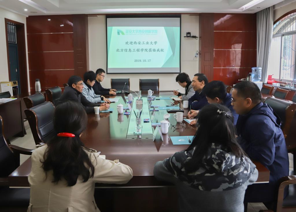 本网讯 10月17日上午,西安工业大学北方信息工程学院董事长叶曲炜、副董事长戴宏来公司考察交流,董事长崔海潮、执行董事长陈香山、董事长助理李梦翔及党政办、教务处、人力资源管理中心负责人在第二会议室参加座谈会。