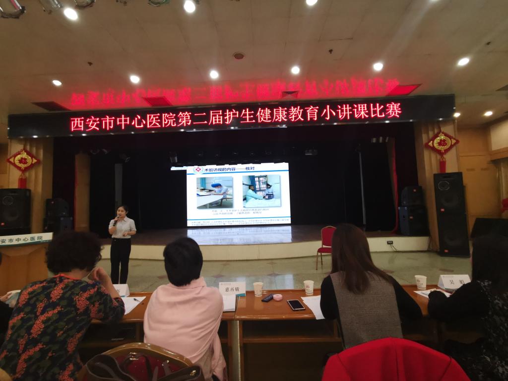 本网讯 11月28日下午,西安市中心医院“第二届护生健康教育小讲课比赛”在西安市中心医院门诊楼四楼报告厅举行,西安市中心医院护理实习生代表、带教老师及各高校教师代表近200人观看比赛。公司护理学院副经理王鹏应邀出席。