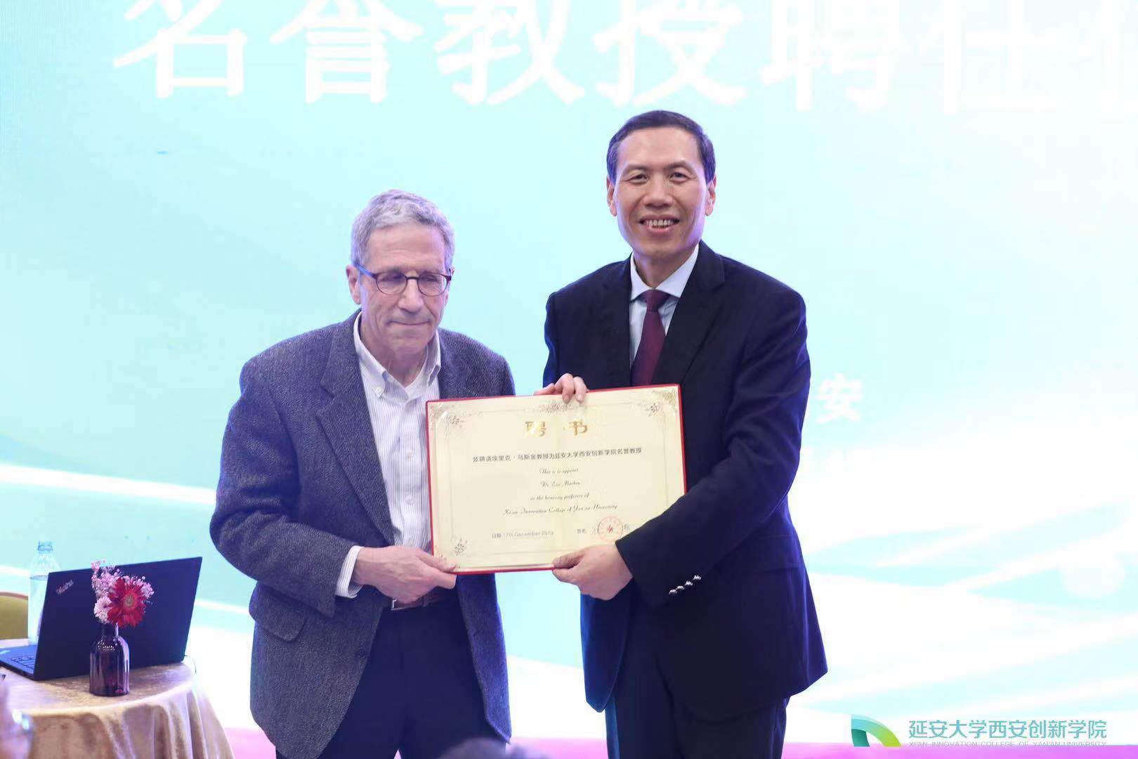 崔海潮董事长为马斯金教授颁发“名誉教授”聘书
