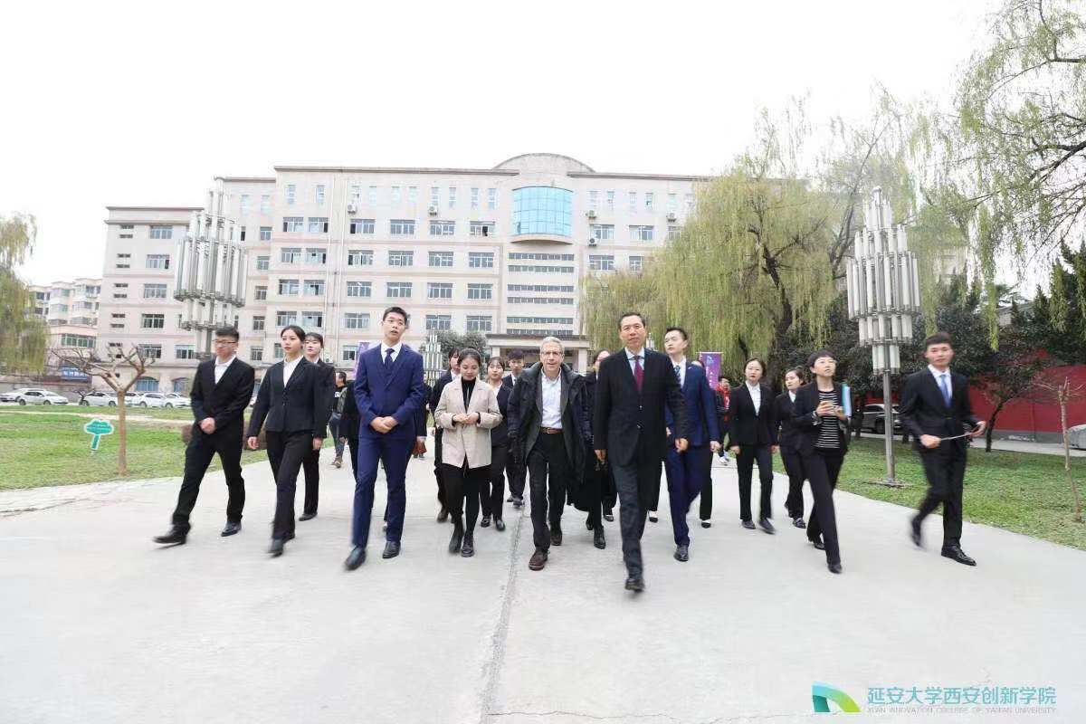 上午10时,马斯金教授一行在学校领导的陪同下缓步进入校园,老员工艺术团以一段《仿唐乐舞》迎接远道而来的客人。全体校领导在第二会议室会见了马斯金教授一行,董事长崔海潮简要介绍了学校的办学定位、办学成就、校园文化、国际合作与交流等情况,希望马斯金教授今后继续关心和支持创新学院的发展,助力学校加快推动国际化办学。