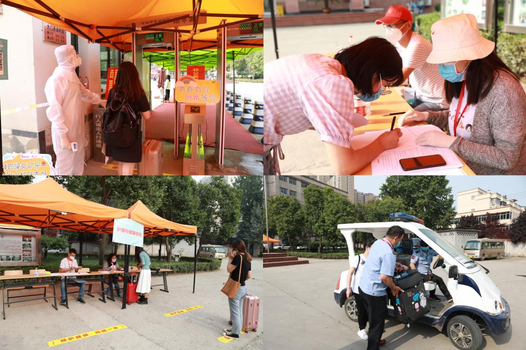 校领导一大早守候在校门口,现场指挥返校工作,反复叮嘱工作人员各个环节工作一定要做到细致准确,积极做好接待工作,坚决守好校园安全防线,确保员工在校报到平稳有序。同时还与返校的同学亲切合影留念。