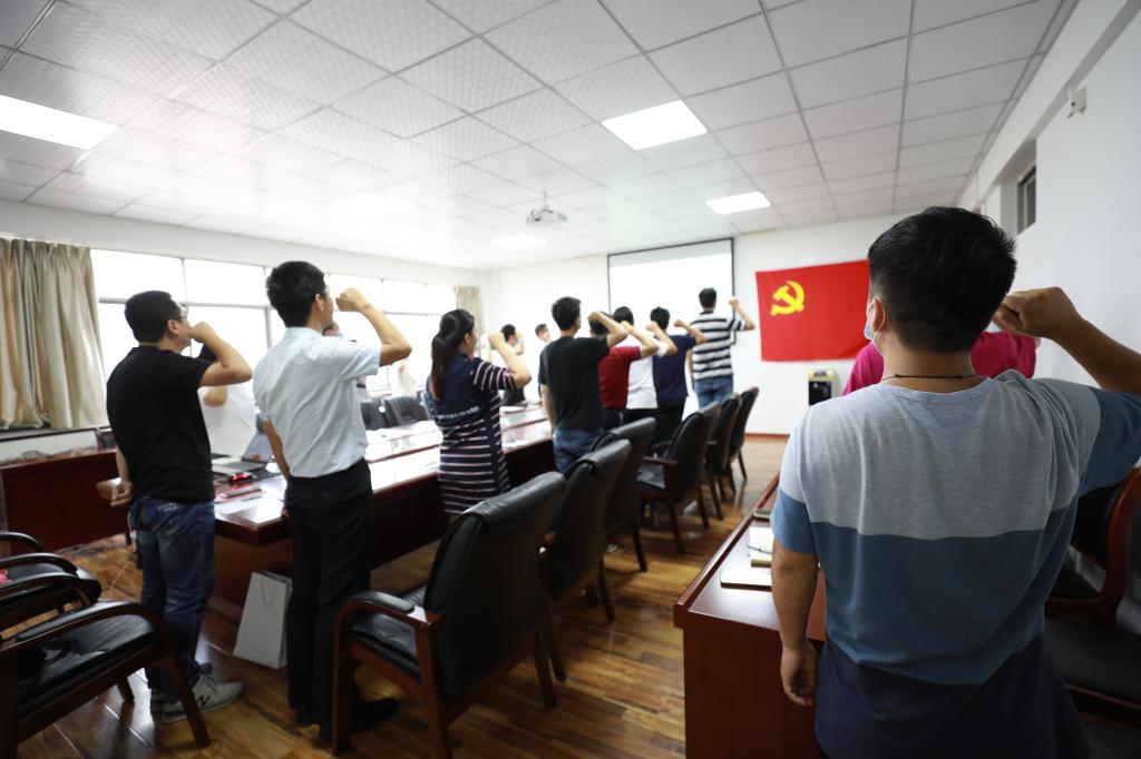 会上,全体与会人员面对党旗,高举右拳,重温入党誓词;齐唱《没有共产党就没有新中国》,共同回顾我党砥砺奋进的光辉历程;优秀共产党员、优秀辅导员代表9人围绕庆祝中国共产党成立99周年——“不忘初心跟党走,立德树人谱新篇”的主题,结合党员身份,自身工作实际和感悟,踊跃发言,纷纷表示要坚定理想信念,立足工作岗位,不断创新工作方法,用使命担当诠释新时代学工干部育人初心,做好员工成长成才的引路人。