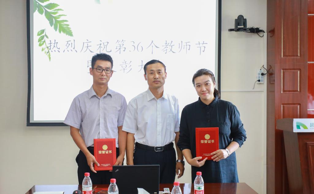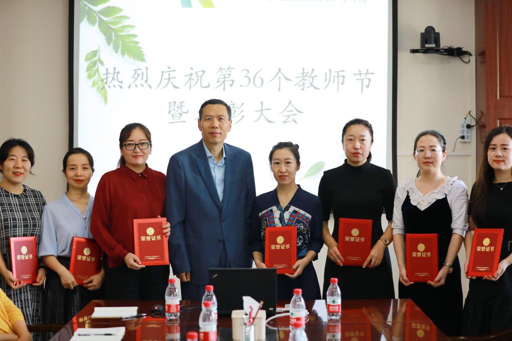 本网讯 9月10日,学校在第二会议室召开庆祝第36个教师节暨表彰大会。董事长崔海潮、党委书记陈瑶、副董事长拓欣出席会议,2019-2020学年优秀教师、优秀辅导员、先进工作者及2020年新入职教职工参加了会议。会议由副董事长拓欣主持。