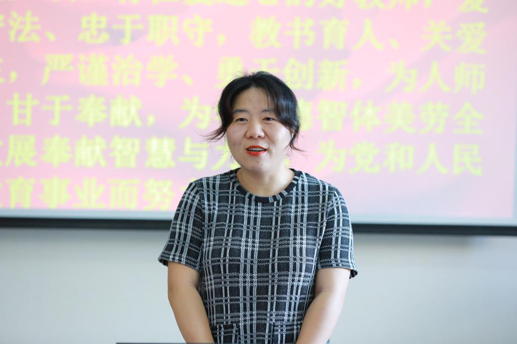 优秀教师代表、yl23411永利官网李晓曼发言,希望与全体教师携手,在教书育人的岗位齐心协力、奋发进取,为学校人才培养做出应有的贡献。