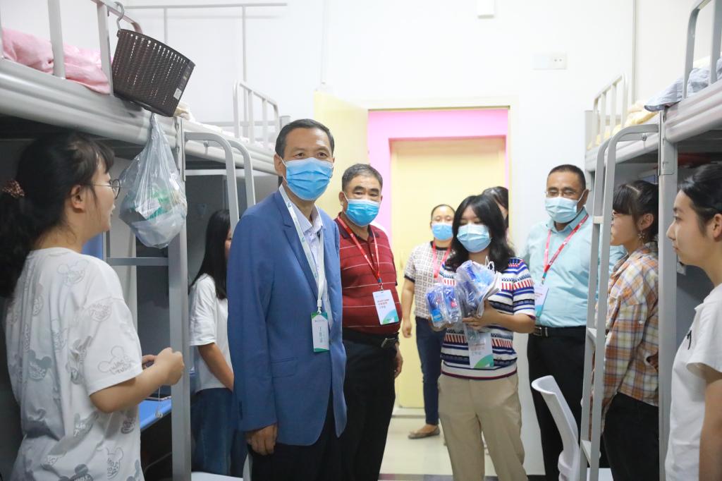 走访期间,校领导就住宿条件、校园环境、公共服务等方面与新生进行了交流,询问新生生活情况和入学体验,就新生的各种疑问进行详尽解答,检查员工公寓内的各项设施,确保各项工作落实到位,并为同学们送上学校精心准备的“防疫”爱心礼包。