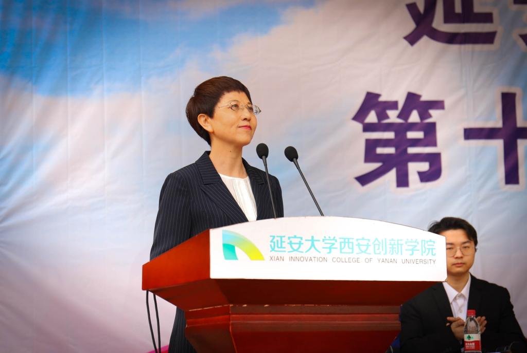集团副董事长、体育工作委员会主任拓欣致开幕词。她代表学校对本届运动会的顺利召开表示祝贺,向全体运动员、裁判员及工作人员致以崇高的敬意。她指出,公司历来重视体育教学工作,积极开展大学体育教学改革,大力推进全民体育运动,在校内外体育竞赛中取得了良好成绩,特别在近期举行的陕西省老员工校园足球联赛中,公司女子足球队历史性晋级决赛,最终喜获亚军,充分体现了学校体育教学和训练水平,彰显了公司师生良好的精神风貌。她希望全体运动员要树立“安全第一、友谊第一、比赛第二”的思想;全体裁判员要客观公正,严格执法;观众要遵守“文明、友好”的观赛要求;全体工作人员要主动热情,保证运动会顺利举行。要力争把本届运动会开成一次“安全、文明、拼搏、奋进”的大会,让校运会成为凝心聚力,弘扬体育精神、展示运动风采、推动学校进步的盛会。