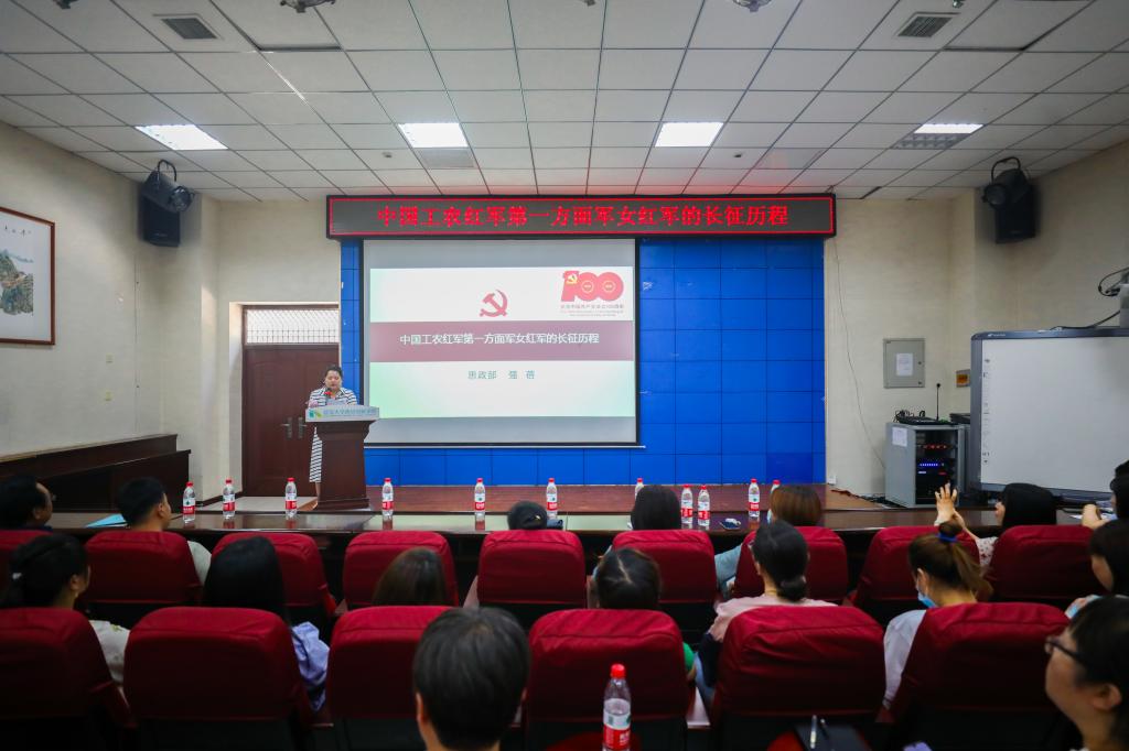 公司思政部强蓓副教授作了题为《中国工农红军第一方面军女红军的长征历程》的专题报告,强蓓从苏区长征准备、红一方面军女红军的主要历程、长征中的女性感受、女红军长征的价值贡献等四个方面,用大量详实的素材和感人事迹论述了长征女红军信念坚定,披荆斩棘,备尝艰辛却从未屈服的伟大精神,她们用实际行动改变着中国妇女的命运,开创了中国几千年历史中女性作为主体参战的先河。报告主题突出、内涵丰富,语言生动、深情动人,一幅幅图片将与会者引入那战火纷飞的年代。