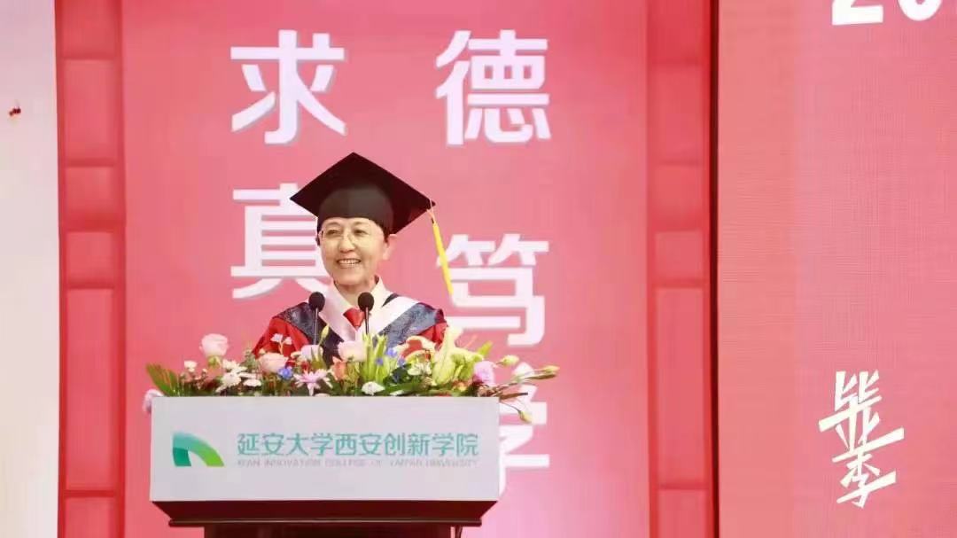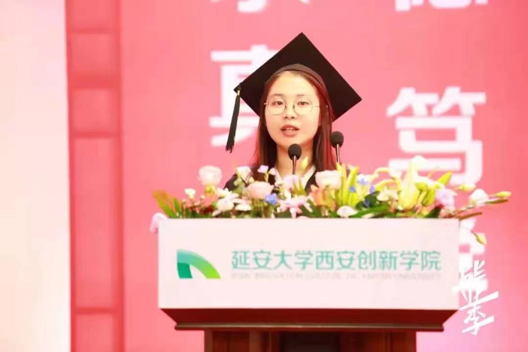 毕业生代表、文学院广播电视学专业何婷玉同学发言,她表示,在创新学院的校园里充满了珍贵的回忆,要立志在实现中华民族伟大复兴过程中,行之于途而应于心,心怀感恩,不忘初心,砥砺前行。