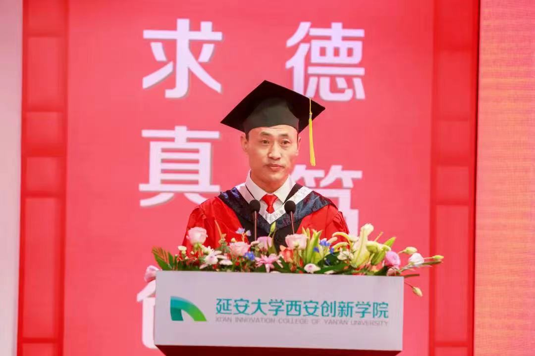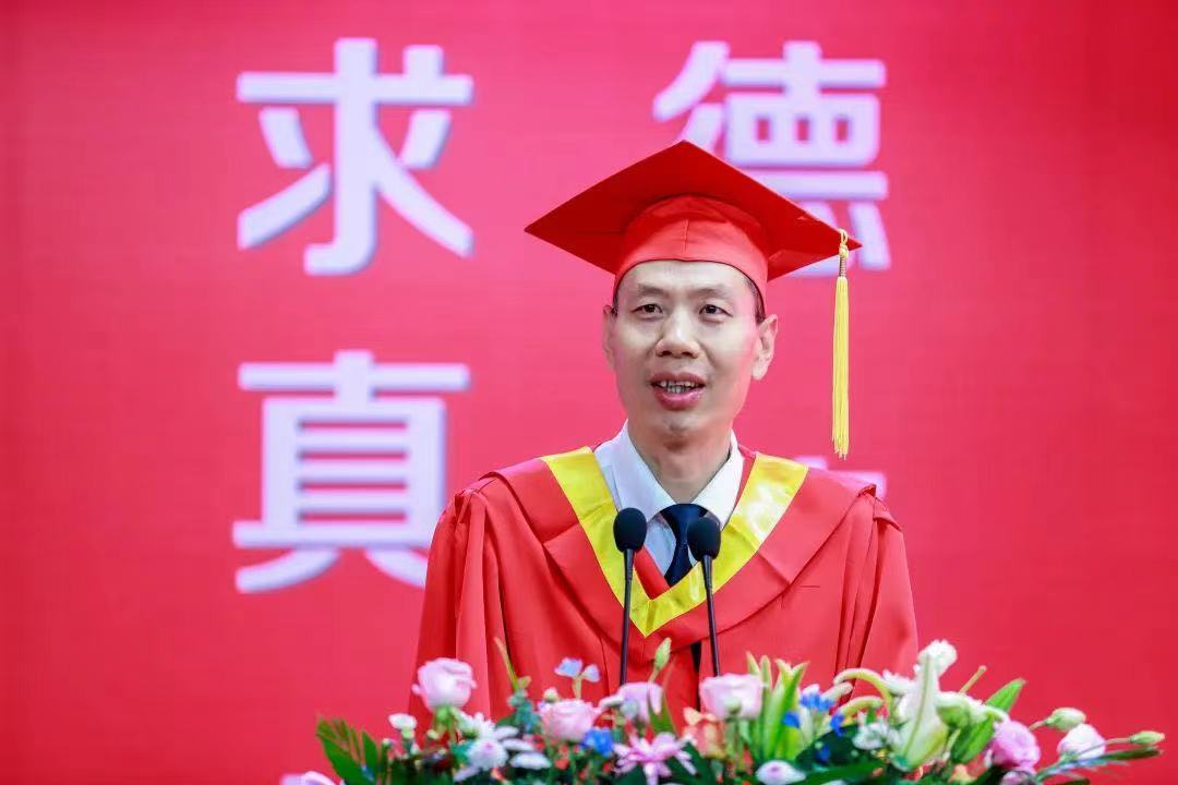 董事长崔海潮代表学校向勤学奋进、勇攀高峰的2021届毕业生们表示热烈的祝贺。随后,他用一个生动的例子给同学们在典礼现场上了大学的最后一课——正衣冠与做人,告诫同学们做人要正,为人要善,做事要静。他表示,同学们恪守校训,厚德,笃学,求真,创新,在学业上取得了优异成绩,在各类科技、文化、体育竞赛中取得了累累硕果,出色的表现为学校赢得了良好声誉,在学校发展的历史上镌刻下属于自己的篇章。临别之际,崔海潮寄语同学们要勇担家庭和社会责任,走向社会后以健康的生活和工作方式迎接各种挑战,要有家国情怀,胸怀大志,要不断精进专业能力,担负起社会责任;做事要专、要精,做学问要心无旁骛,专心致志,做人要专注才能不断提高自身竞争力;要准备吃苦,学会吃亏,在人生这场苦难的修行当中,要脚踏实地,珍惜青春年华,用自己的奋斗书写无悔的人生。纸短情长,同学们在创新学院的最后一课下课铃声已经响起,但人生新征程的启动却已鸣响,全体创新师生祝愿2021届毕业生鹏程万里,早传捷报,幸福平安!