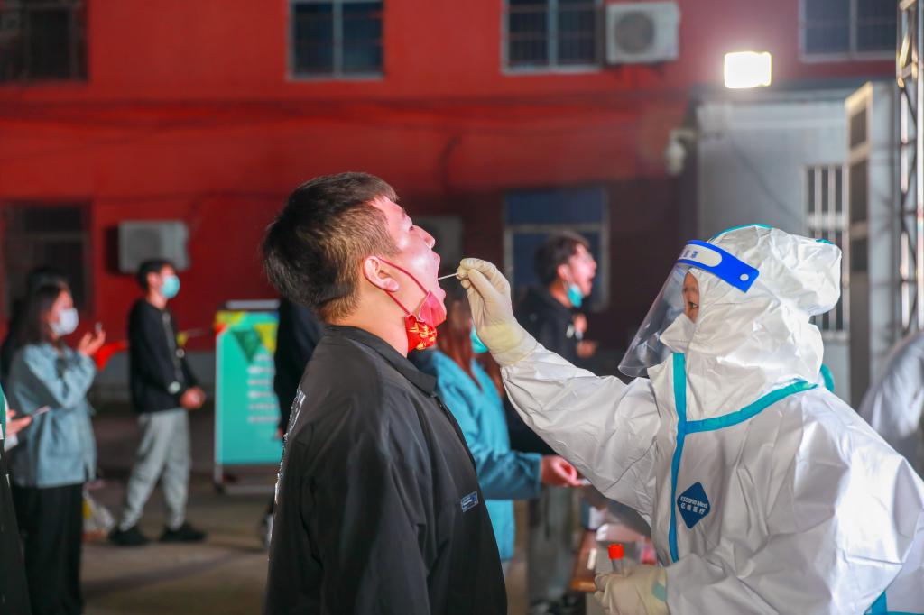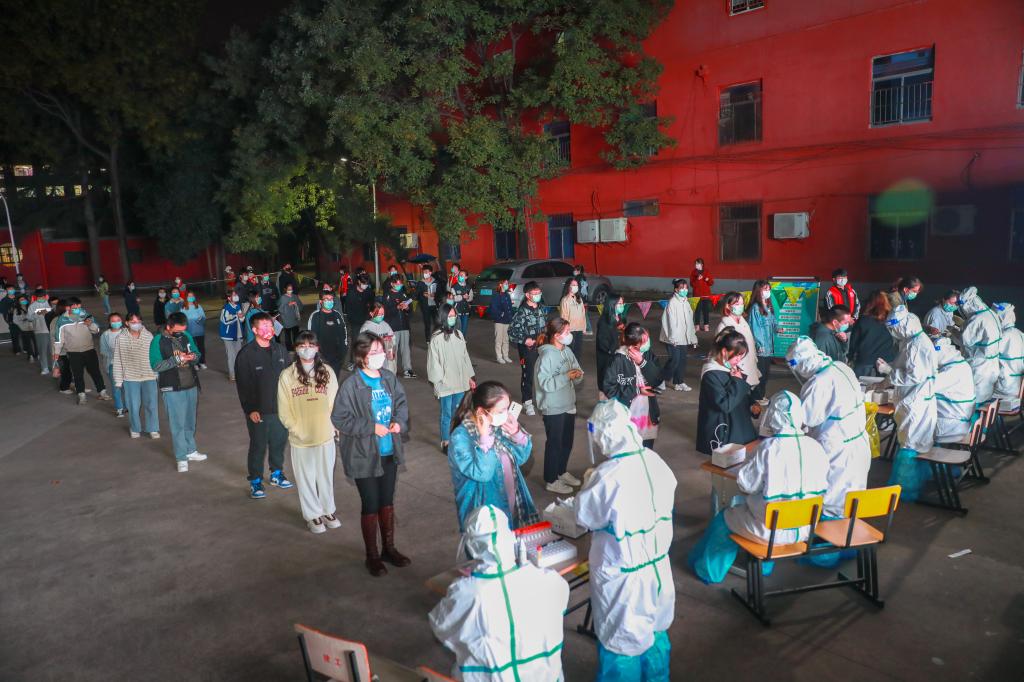 集团领导高度重视,疫情防控办、后勤处、员工处等部门通力合作,对场地设置、物资准备、检测流程、各学院班级调度等方面进行了安排部署。10月28日晚,员工们在工作人员的指引下,间隔一米,有序排队,1146名考生的核酸检测工作于当晚全部完成。