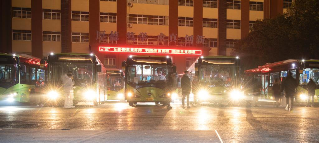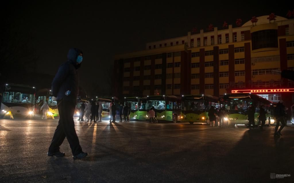 1月22日西安公交集团二公司免费承担学校1600余名陕北籍员工专列 “点对点”转运任务。为保证安全、有序、按时完成转运任务,1月21日晚8时,二公司领导亲临学校,一起查看场地、共同设计进出路线图。22日清晨6时10分,二公司45辆公交车和5辆大巴车分两批驶进学校,二公司相关同志现场指挥,倒车、摆正、打开车灯和双闪,庞大车队短时间有序停放在学校一号教学楼广场。驾驶员大白们提前将车内暖气打开,用最洁净安全温暖的车辆接纳创新学子。800多名员工登车,每辆车35人不超载,严格遵守安全运输规定,10多分钟离场,第二批车辆迅速到位,旋即奔向西安火车站。