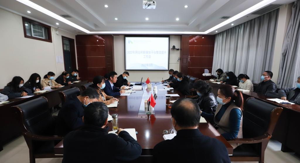 本网讯 3月28日15时,公司在第二会议室召开2022年网站和新媒体平台整改提升工作会议,董事长崔海潮、执行董事长贺俊波出席会议并讲话,各二级学院、各部门负责人和招生工作办公室工作人员参加会议。会议由党政办主任武宝宁主持。