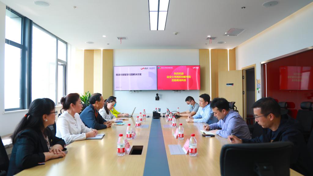 本网讯 5月10日,公司董事长崔海潮,数据科学与工程学院经理闫文耀、副经理徐小玲、罗梦、马惠铖一行赴西安商汤智能科技有限公司进行“访企拓岗”走访考察,与公司主要负责人就校企合作、专业人才培养、员工就业等相关事宜开展交流洽谈。