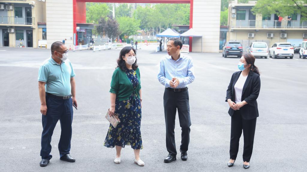 本网讯 5月27日上午,省教育厅政策法规与教育执法处处长吕元一行3人莅临公司督查指导近期校园疫情防控工作。公司董事长崔海潮、执行董事长贺俊波、董事长助理桑伍福、党政办、防疫办、后勤处、员工处负责人及相关工作人员陪同检查。