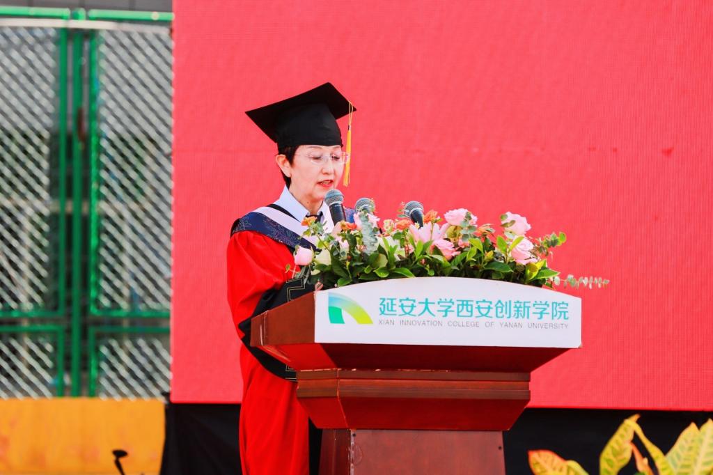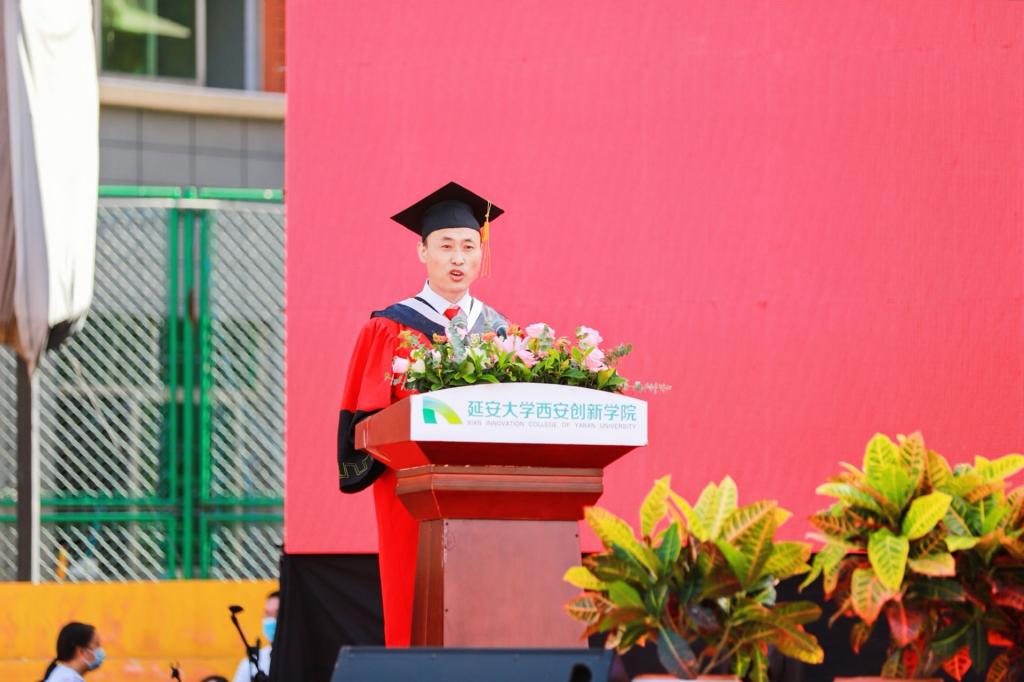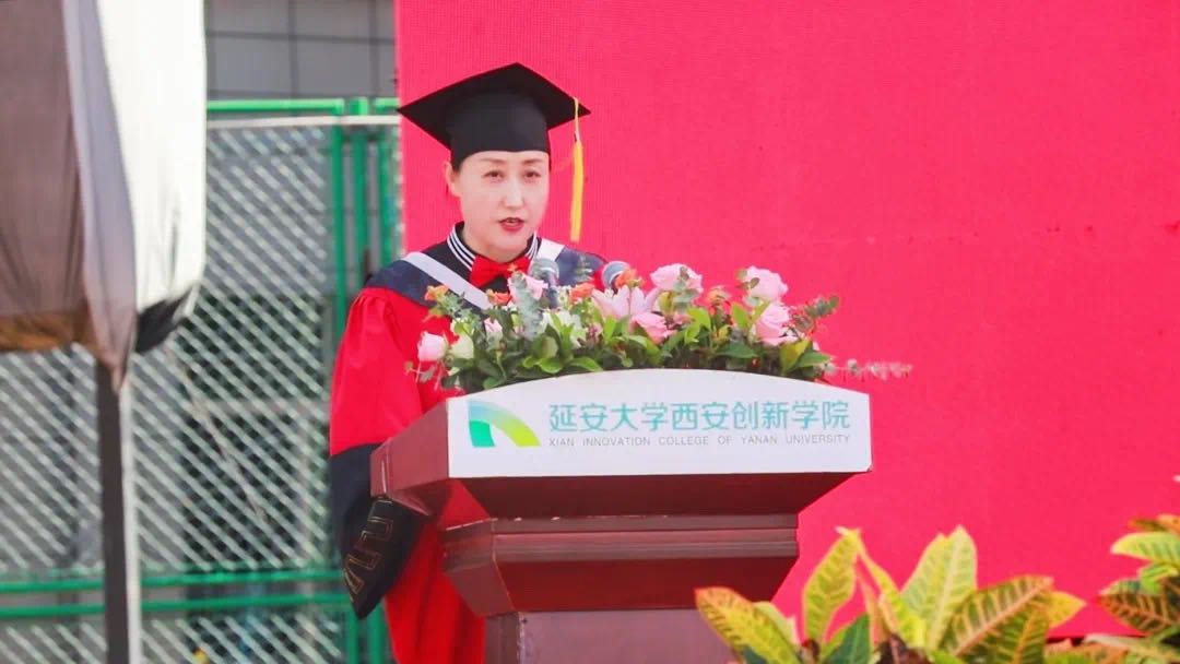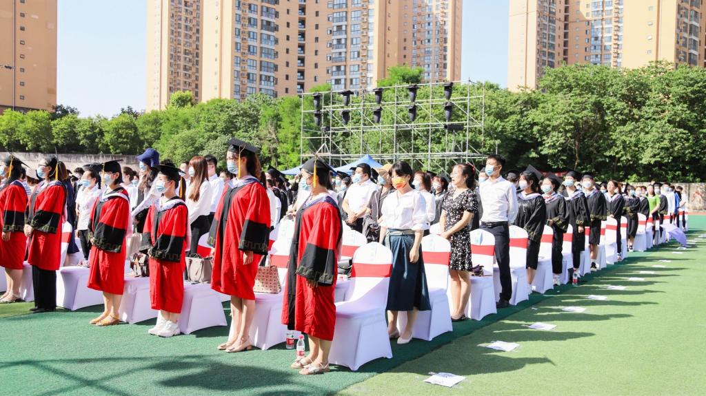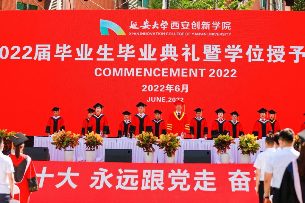 毕业典礼在暖场视频中拉开序幕,在庄严的国歌声中正式开始,全体师生起立,共同奏唱国歌。毕业典礼上,陈瑶宣读《陕西省教育厅办公室关于表彰2022届陕西高校优秀毕业生和优秀员工干部的通报》,学校领导为公司被评为省级优秀毕业生和优秀员工干部颁奖。
