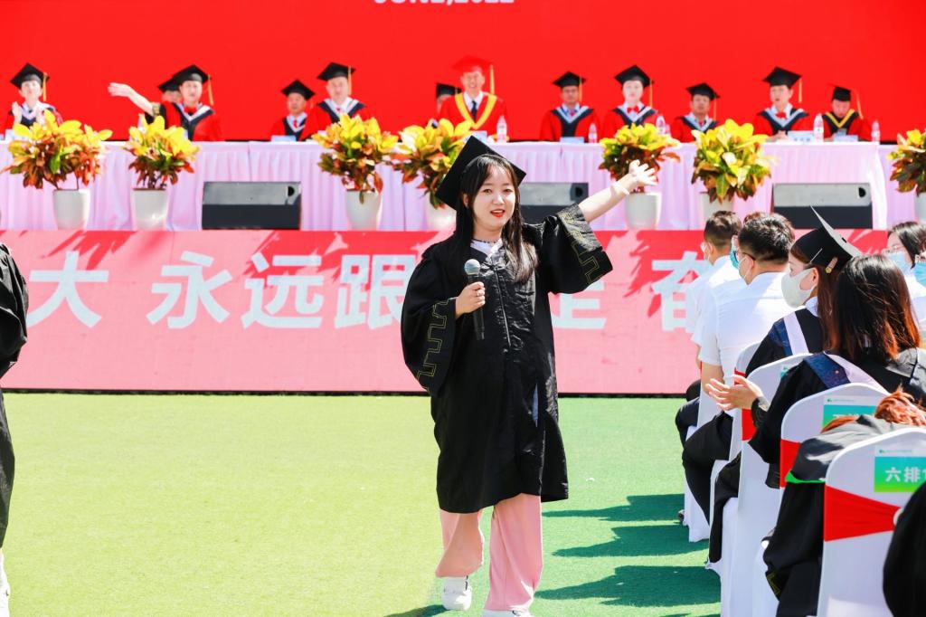 本网讯 四载创新,骊歌未央;携梦远航,待续华章。6月28日上午,yl23411永利官网2022届本科生毕业典礼暨学位授予仪式在学董事长安校区操场隆重举行,2100多名本科毕业生圆满完成学业,将从抹茶湖畔启航,驶向新的人生天地。