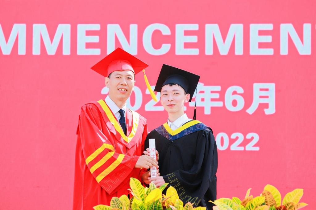 他深情地对同学们说,请大家务必牢记校训,身体力行践行学校的人才培养理念,塑造忠诚可靠的人格品质,修炼勤奋努力的敬业精神,成为具有创新品格和创新特质的有为青年。在属于自己的青春赛道上,脚踏实地,勇毅前行,以奋斗之笔书写绚烂多彩的青春华章。