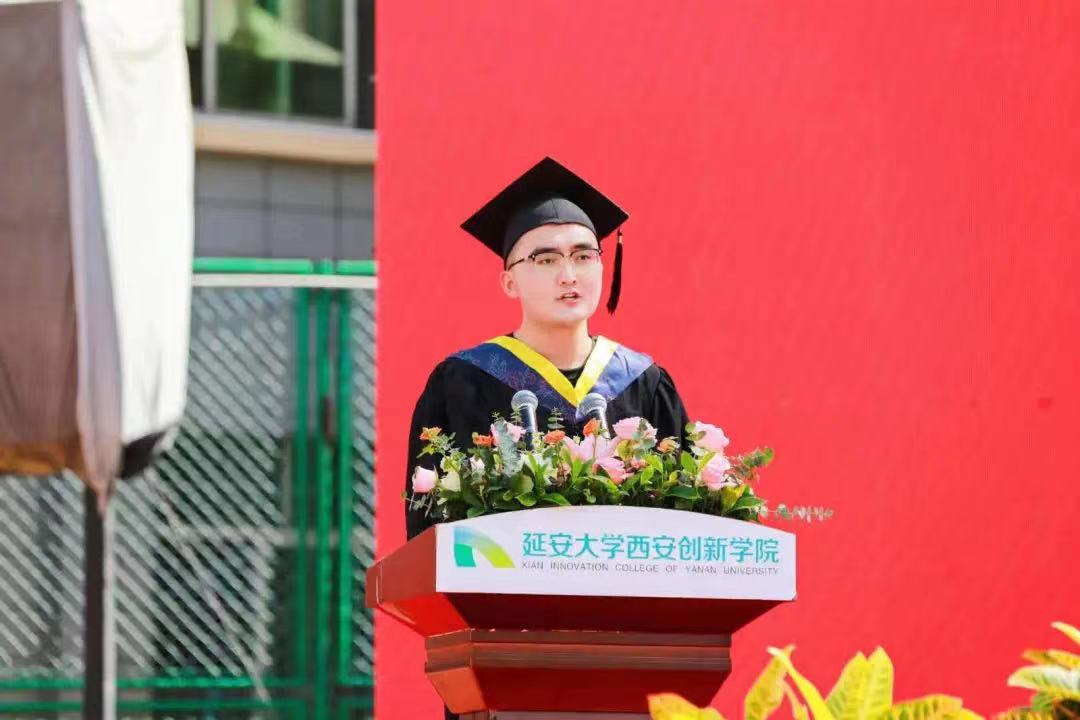 毕业生代表、数据科学与工程学院董宇航发言。他衷心地感谢母校和师长的辛勤培育,他表示在“厚德、笃学、求真、创新”校训的引领下,在延安精神、井冈山精神的熏陶下,大学四年时光充实而精彩。他呼吁在座学子在以后的人生道路上时刻铭记校训,不断丰富自己,充实自我,为母校的建设发展建言献策,为实现中华民族伟大复兴中国梦贡献青春力量。