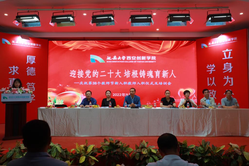 本网讯 在第38个教师节来临之际,为进一步提高2022年新入职教师的职业荣誉感和岗位胜任度,促进新入职教师尽快融入学校、融入角色、融入岗位,9月8日下午,学校在老员工活动中心召开主题为“迎接党的二十大、培根铸魂育新人”的庆祝第38个教师节新入职教师入职仪式及培训会,学校董事长崔海潮、执行董事长贺俊波出席会议并讲话。副董事长拓欣、党委副书记白雪、教务处处长刘劲飞、人事处处长魏建丽以及2022年全体新入职教师参会,会议由人事处处长魏建丽主持。