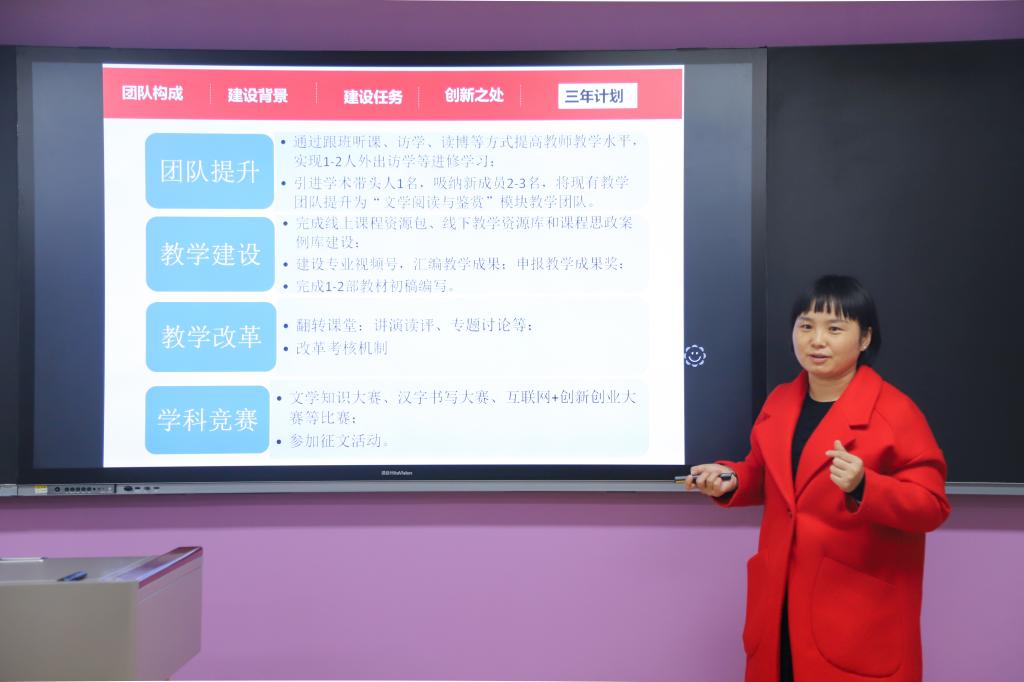 为贯彻落实立德树人根本任务,深化公司产品改革,全面提高教师队伍公司产品水平,科学有序推进学校教学团队建设,做好校级教学团队立项,经各学院申报和教务处初审,11月23日下午教务处在1511教室召开2022年度校级教学团队答辩会。会议邀请马保国教授、杨育民教授、王文亮教授作为点评专家为各教学团队“把脉”。执行董事长贺俊波、副董事长拓欣、董事长助理侯延丽、体育部主任郑文海教授以及各教学团队负责人及主要成员、教务处工作人员参加答辩会。会议由副董事长拓欣主持。