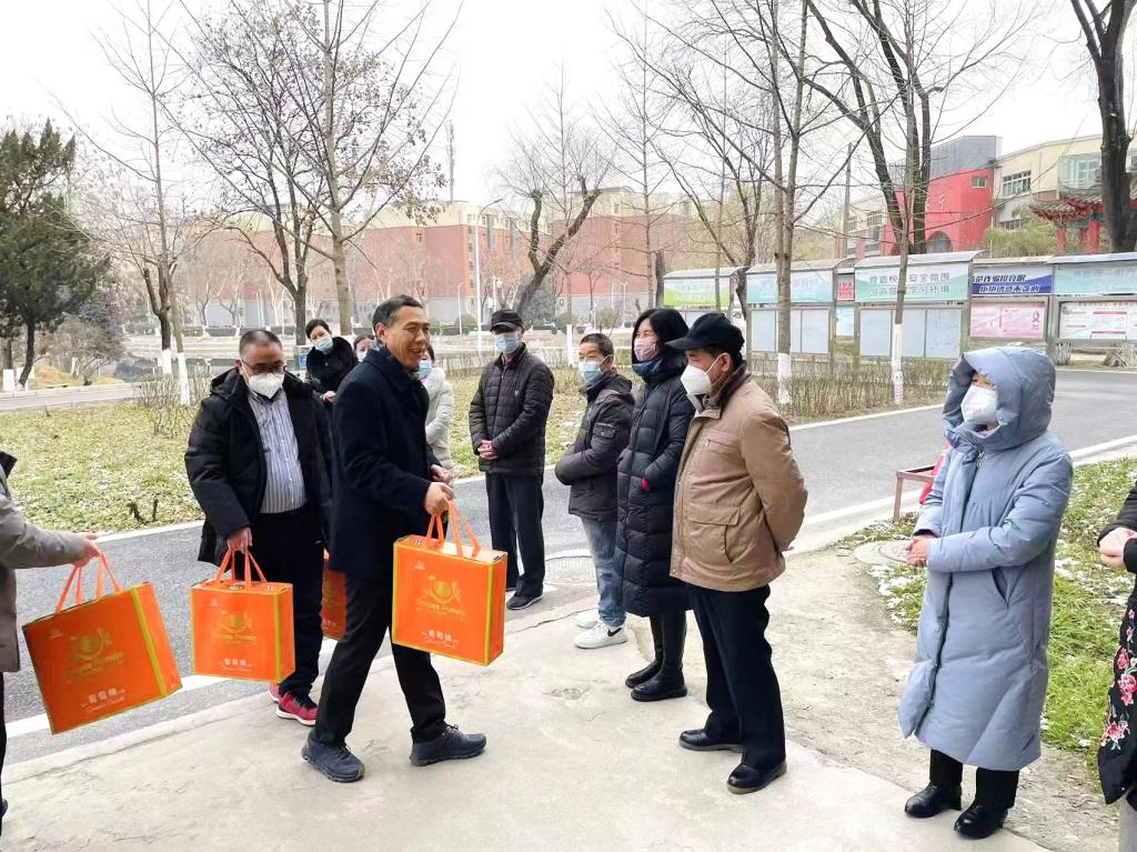 本网讯 1月21日上午,在2023年春节来临之际,学校组织开展了慰问寒假期间一线在岗职工活动。董事长崔海潮带队看望和慰问了在长安校区值班值守的党政办、员工处、后勤处等部门工作人员,党政办、后勤处、招采办、工会等部门负责人参加了慰问活动。
