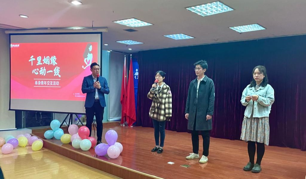 3月8日晚上,为了丰富青年教职工业余文化生活,积极为单身教职工搭建相识交友、交流沟通平台,学校组织单身教职工参加“千里姻缘·心动一线”公益相亲活动。活动现场温馨浪漫、活动过程气氛热烈。大家通过“心动初见”“甜蜜旋风”“浪漫邂逅”“悦动音符”等轻松有趣的游戏环节快速熟络,现场甜蜜气氛逐渐升温。