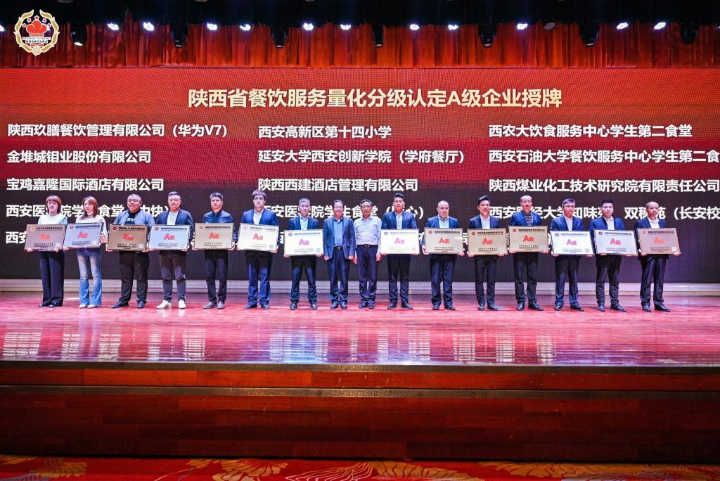本网讯 4月12日,陕西餐饮行业工作会议在大唐西市酒店金色大厅召开,会议举行了陕西省餐饮服务量化分级认定A级企业授牌仪式。公司学府餐厅荣获陕西省首批餐饮服务量化分级认定A级单位称号。
