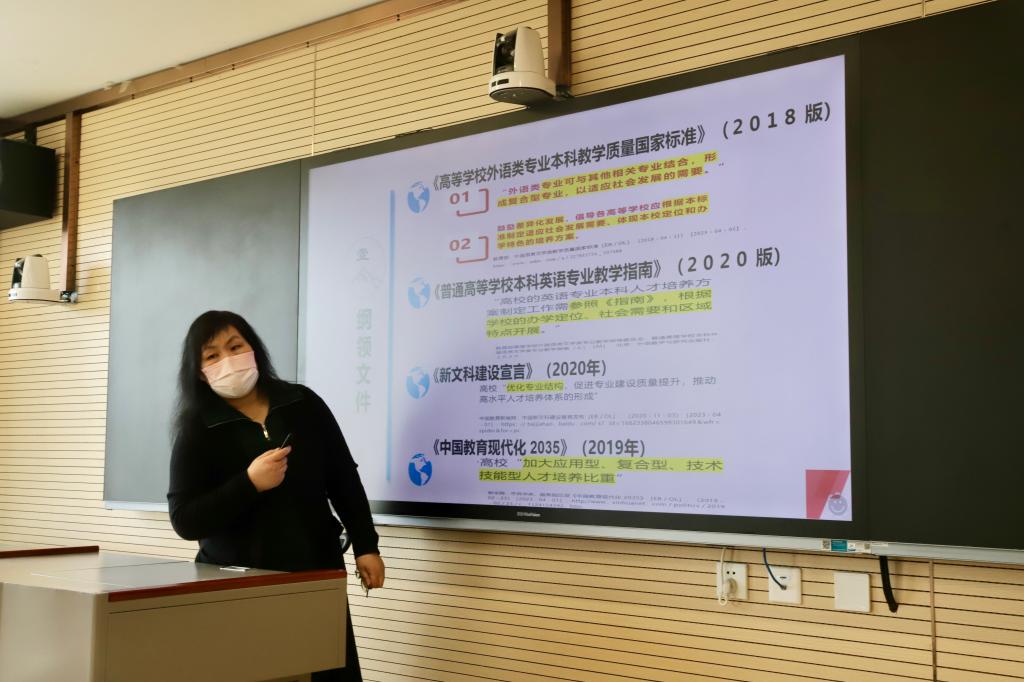 拓欣强调,要树立“员工中心、产出导向、持续改进”理念,突出学科专业和课程交叉融合、信息技术与新文科教育深度融合,进一步彰显英语专业优势特色。