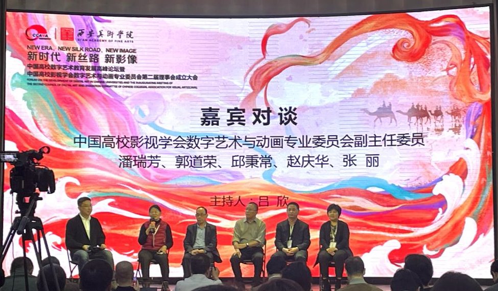 本网讯 4月15日至16日,由中国高校影视学会与西安美术学院共同主办,中国高校影视学会数字艺术与动画专业委员会、西安美术学院影视动画系承办的“新时代 新丝路 新影像”中国高校数字艺术教育发展高峰论坛在西安美术学院召开,执行董事长贺俊波、艺术与传媒学院经理张恒、数字媒体艺术教研室主任王亮和来自全国百余所高校的专家学者及行业嘉宾参加了本次活动。