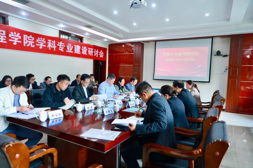 闫文耀简要介绍了数据科学与工程学院整体情况,详细汇报了计算机科学与技术、软件工程、物联网工程、电子信息工程等专业的建设与发展情况,以及团队队伍、科研成果、实验室建设、实习实训基地建设等方面情况和专业发展目前所遇到的问题,并就现有专业如何发展提升、未来新专业的申报、人才培养的改革等方面向与会专家征询建议。