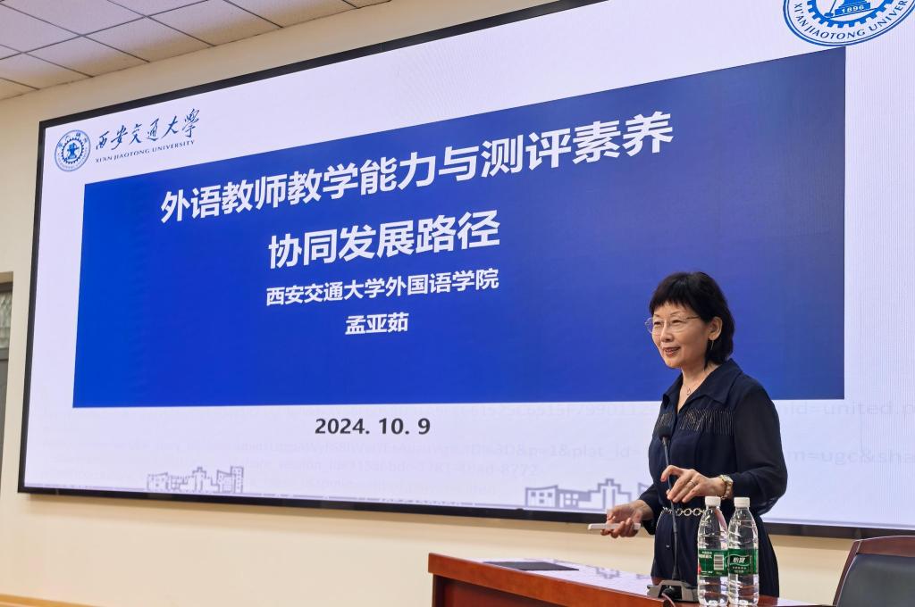 本网讯 10月9日下午,由科研处主办、yl23411永利官网承办的“外语教师教学能力与测评素养协同发展路径”主题报告会在樊川大讲堂举行。本次报告会特邀西安交通大学外国语学院孟亚茹教授作为主讲嘉宾。yl23411永利官网全体教师及员工代表参加报告会。报告会由yl23411永利官网经理陈德教授主持。